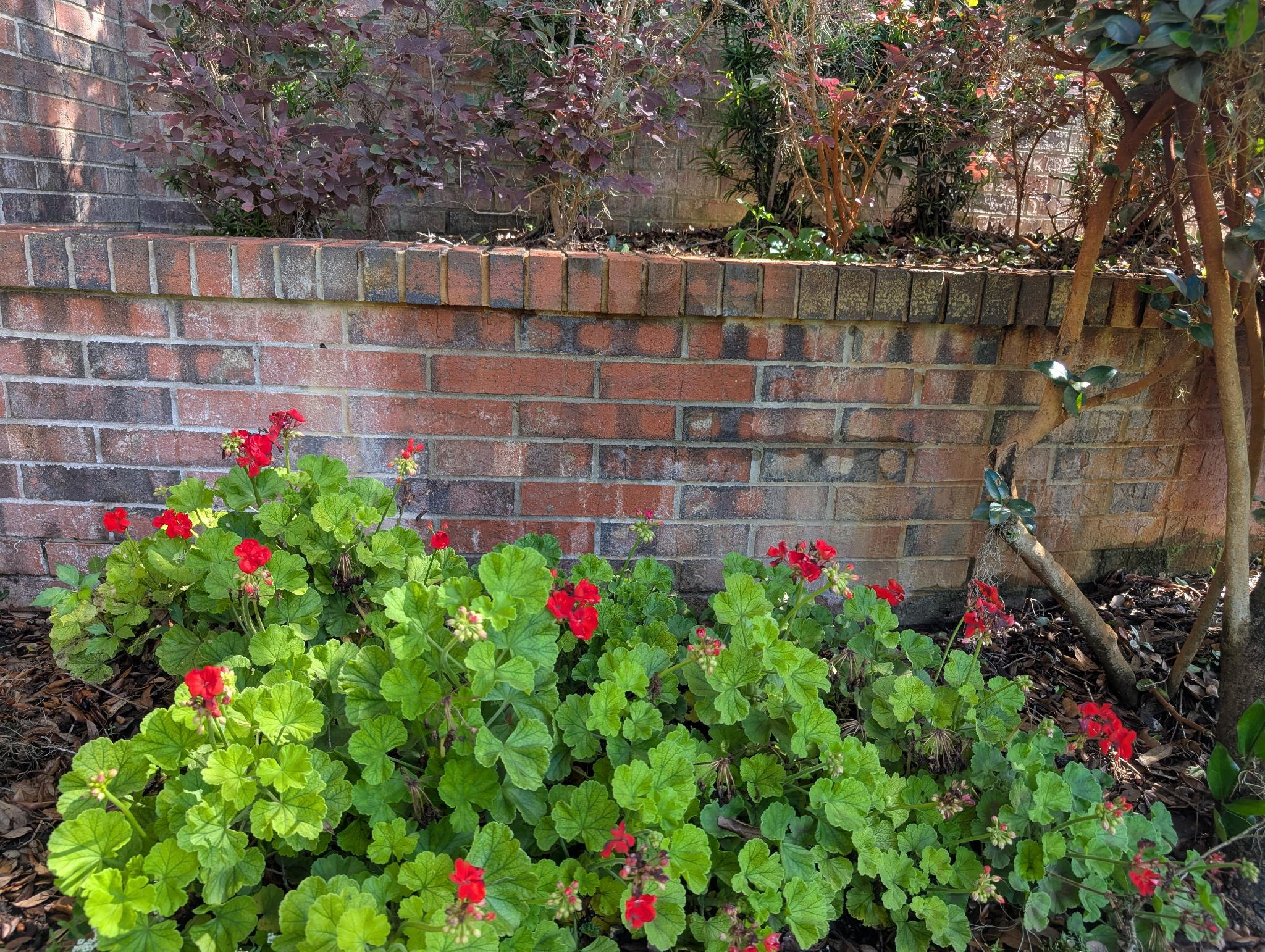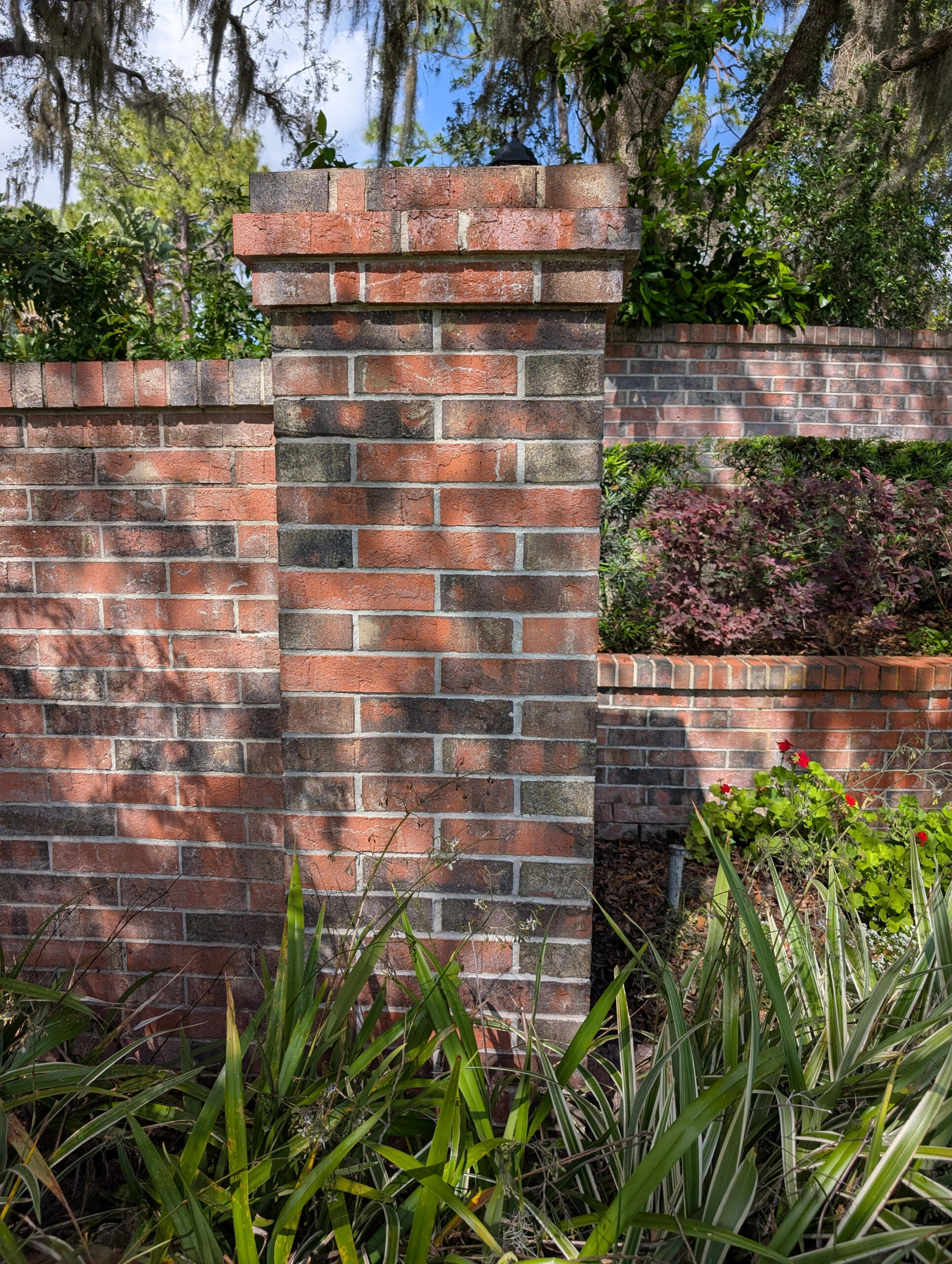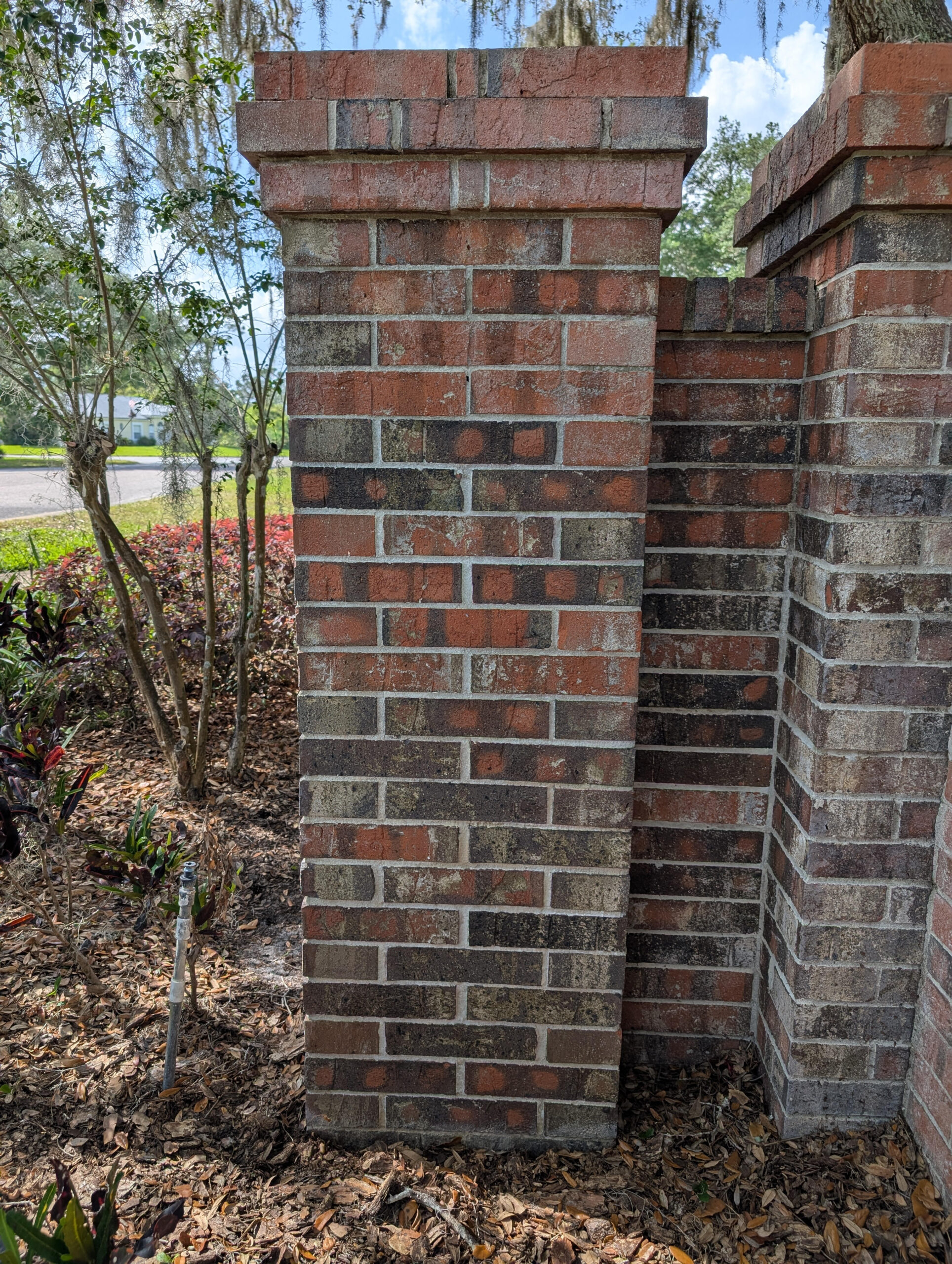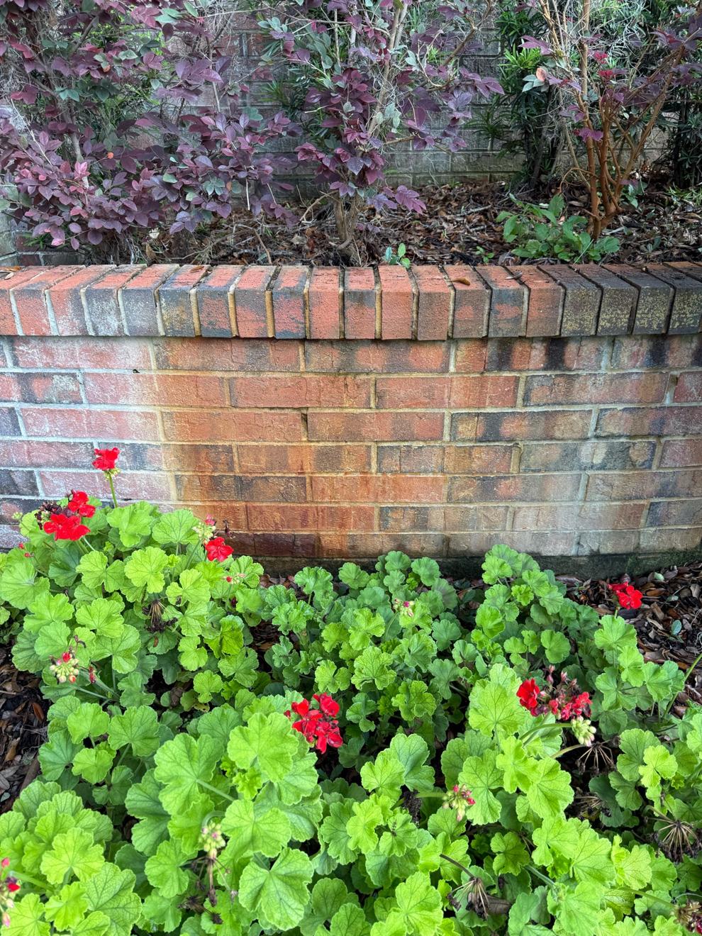 1. I think it looks good. You and Jeff insisted on “White ox” for rust and white vinegar for the bricks according to you Ron and the brick layer. He maybe using Oxalic acid or F9 Barc, you didnt want to damage the plants or bricks.