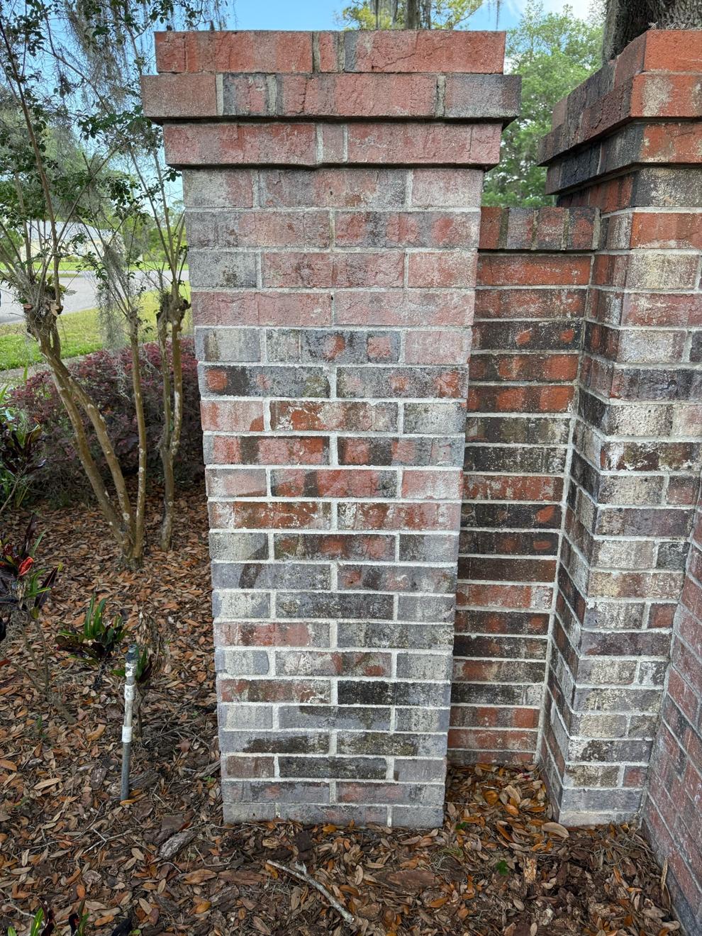 But some of the calcium stains are “efflorescence”, which occurs when sunlight heats moisture that’s inside the brick and causes it and the calcium it carries with it to be deposited on the outside where it becomes visible. How long efflorescence stains will stay clean is harder to predict since bricks can absorb water from dew and rain, and bricks are manufactured using a small amount of lime (calcium oxide). Since the walls are over 30 years old we expect much of the original lime has already leached out and the walls it should be many years before we need to do this again. If we follow up by applying a sealant to the walls, they will remain clean longer.